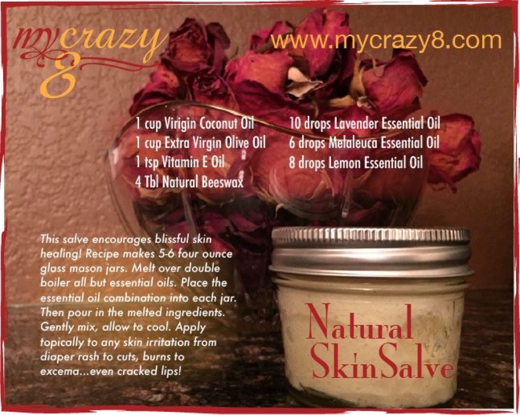 I am first going to share this amazing skin salve recipe that has literally treated 95% of our skin issues! Where all the commercial products have failed, this simple, inexpensive and easy DIY recipe has triumphed! From diaper rash and cradle cap on my babies to keratosis pilaris and eczema on me and my older kids, this recipe has never failed me…not ONCE! A little goes a VERY long way so use sparingly. It is also amazing to use on dry skin (like those tree-bark-worthy sandaled feet we Arizonans feel we have to wear with pride!), rough hands from winter weather, cuts or burns and chapped lips from dry climates. It is simple to make and uses only 4 ingredients and 3 different essential oils (4 if you choose to include the optional but amazingly beneficial oil of Frankincense). Remember this has a shorter shelf life due to the olive oil…olive oil expires in about 6 months from opening the bottle so bear that in mind when you make it and use it.
